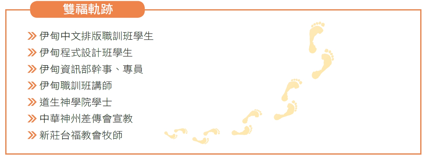在傳統家庭長大的許志銓,一直有長兄如父的觀念,對大哥的話一向言聽計從,不敢有議。於是,在大哥的安排下,便進入伊甸職訓班學習中文排版。過去沒有電腦基礎底子的他,一學就引發出興趣,緊接著又報名程式設計班,一年半的紮實訓練,讓他一技在身,有了想像的未來。