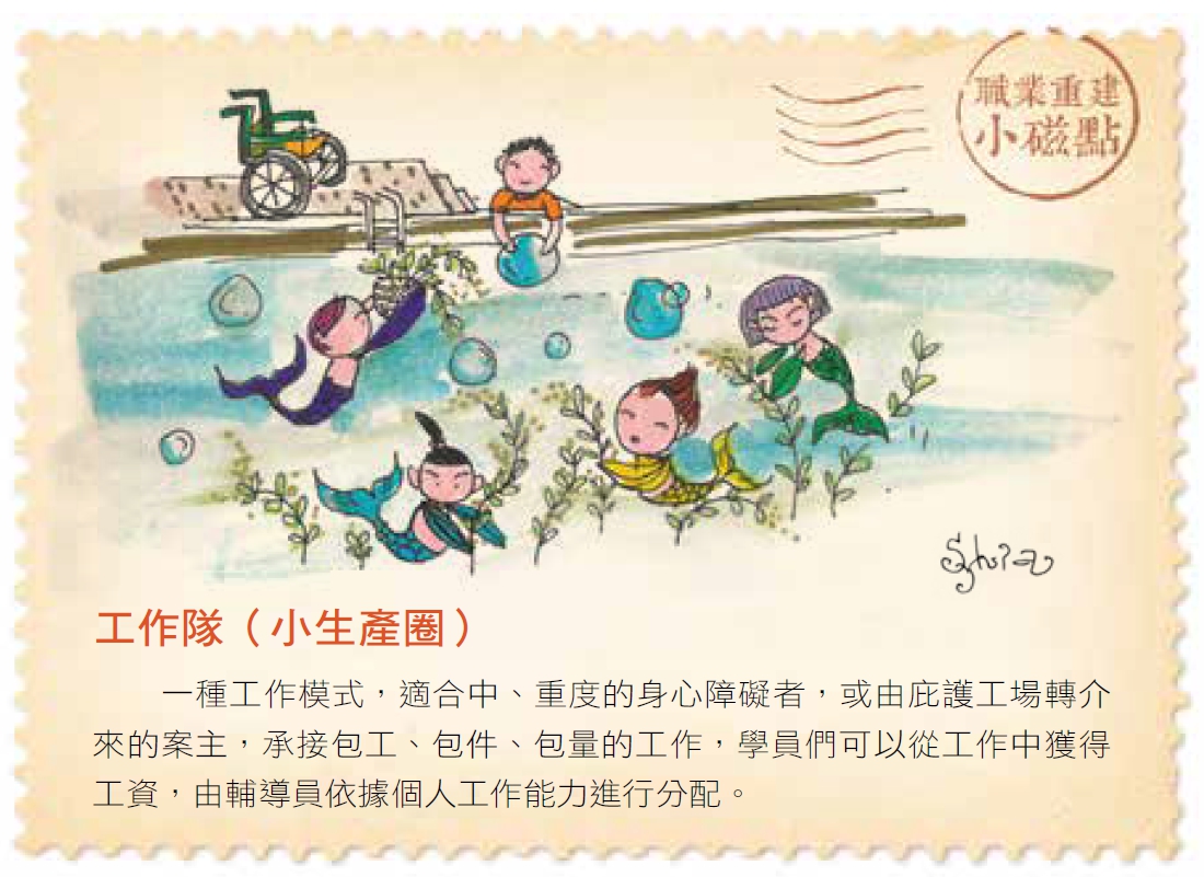 早期帶領教養院的院生組成工作隊,最多曾經一次拿下四個加油站,二十幾個洗車的職缺,必須動用中型巴士接送。此外,工作隊也訓練院生從事清潔服務。「記得那是民國九十四年的開國紀念日,」谷世偉談到承包高速公路休息站的經驗,至今記憶深刻,「我們前一晚才去交接工作內容及掃具,隔天一早,看見遊覽車佔滿停車場,乘客一窩蜂進到廁所,根本沒辦法做事。」