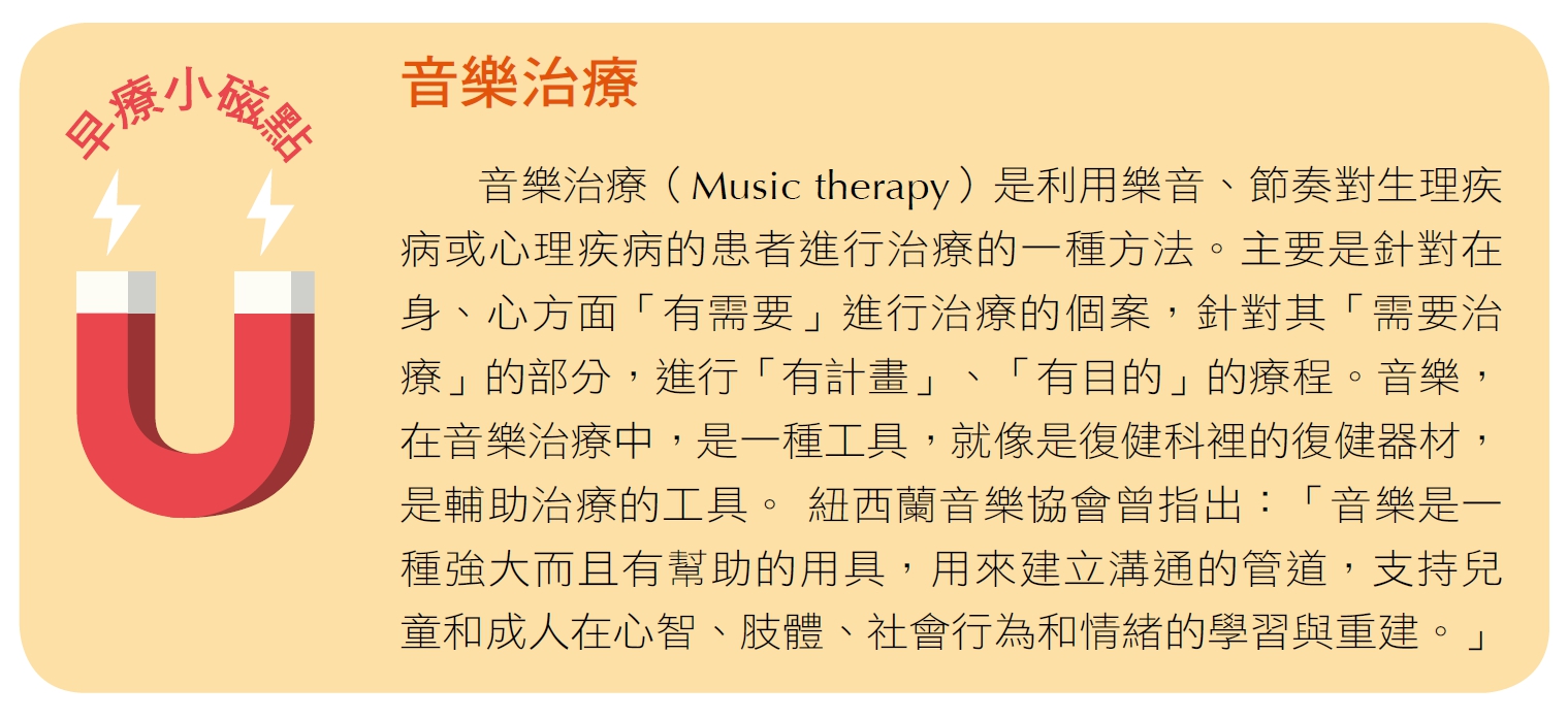 「但我心裡還是牽繫著想回台灣,服務自己的同胞,在2008 年就決定離開紐約回台灣,一心想以音樂治療來緩和人們不安的心緒。」潘佳音在鳳山早療中心的第一堂音樂課,帶領的是重症肢體障礙的小朋友,如腦性麻痺、罕病者等,這是她不熟悉的族群,心情難免緊張。沒想到一下課,早療老師不可置信地向潘佳音表示:有個坐不到5 分鐘就會哭鬧大叫的孩子,那天上音樂課時,竟然表現「反常」,這個小朋友不僅在教室待到20 分鐘,還願意拿起老師分配的樂器跟著打節拍,這給潘佳音極大的鼓舞。