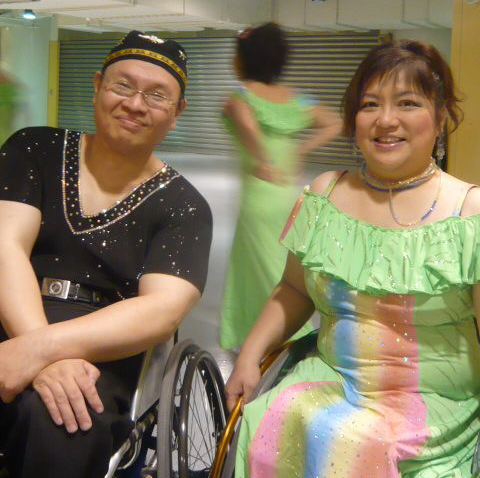 那期間, 漢民他啟動了我探索外在世界的開關,他常常開著那部超酷的四輪傳動車,帶著我上山下海。漢民是伊甸輪椅國標舞的志工,風雨無阻持之以恆,他也帶著多位滑雪朋友一起去跳舞。當我第一次穿著老師設計的舞衣,在偌大的場地,舞動著不是很熟捻的舞序,但我也能身為輪標舞中團體的一員,而覺得十分光榮。