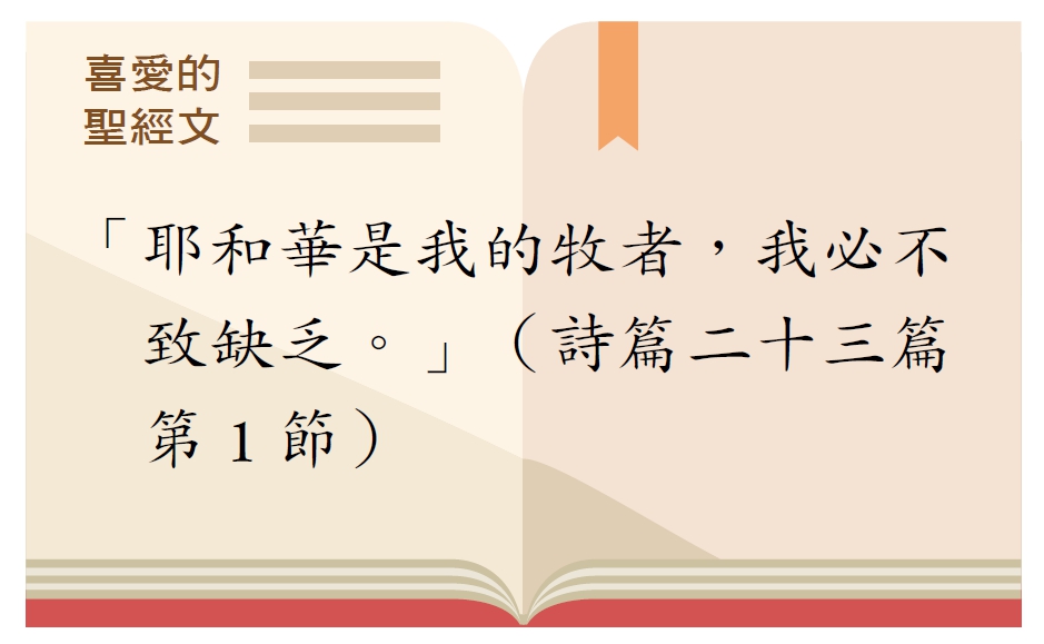 「耶和華是我的牧者,我必不致缺乏。」詩篇二十三篇第1節