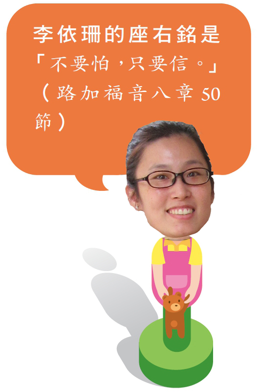 「很感謝神能讓我在一個有信仰的地方工作,每一個工作都有它的困難,我在服務過程中跟家長可能意見歧異,或者是孩子進步很慢;每當自己有挫敗感時,能夠從讀經聽道,得到信仰帶來的力量。」長久以來,李依珊認為神一直都在身邊,時時提醒、安慰並鼓勵自己。從南部調來台北之後依然放心交托;現在、未來都交給上帝,「祂時刻堅固我走這條道路。」李依珊說。