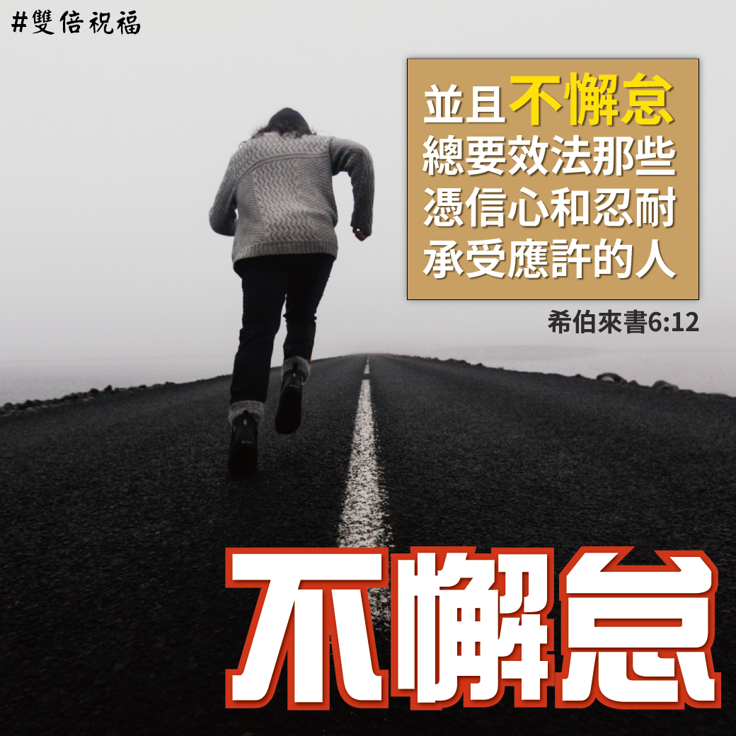 「並且不懈怠.總要效法那些憑信心和忍耐承受應許的人。」(希伯來書6:12)