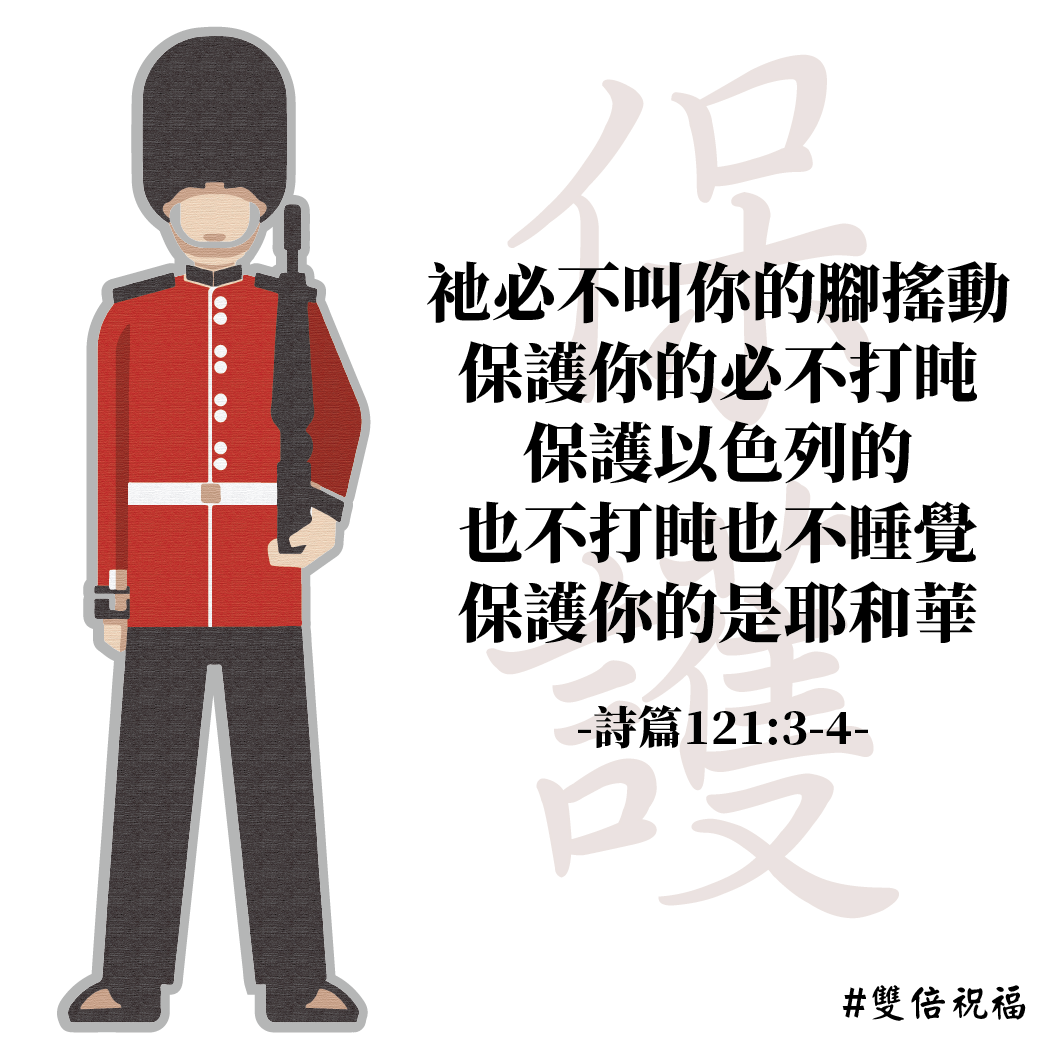 「祂必不叫你的腳搖動;保護你的必不打盹!保護以色列的,也不打盹也不睡覺。保護你的是耶和華」(詩篇121:3-4)