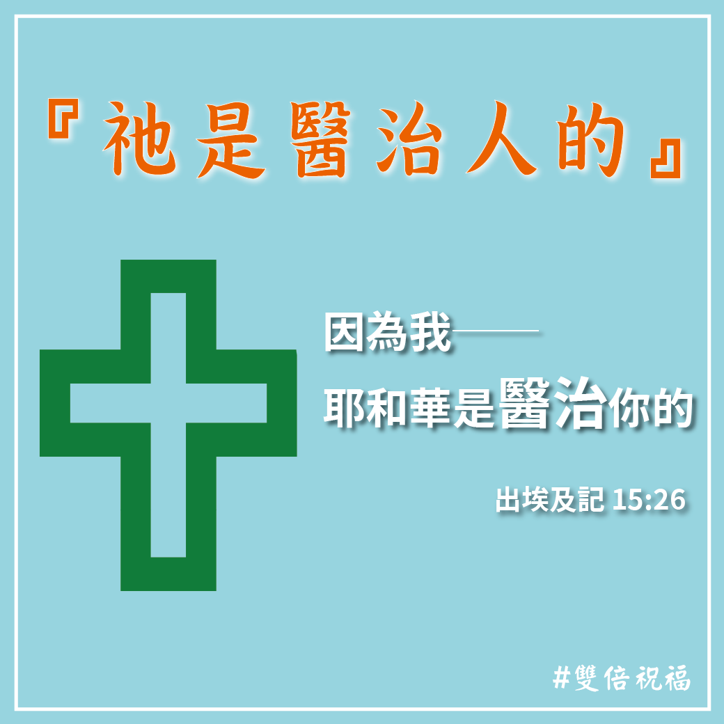 「…,因為我──耶和華是醫治你的。」(出埃及記15:26)